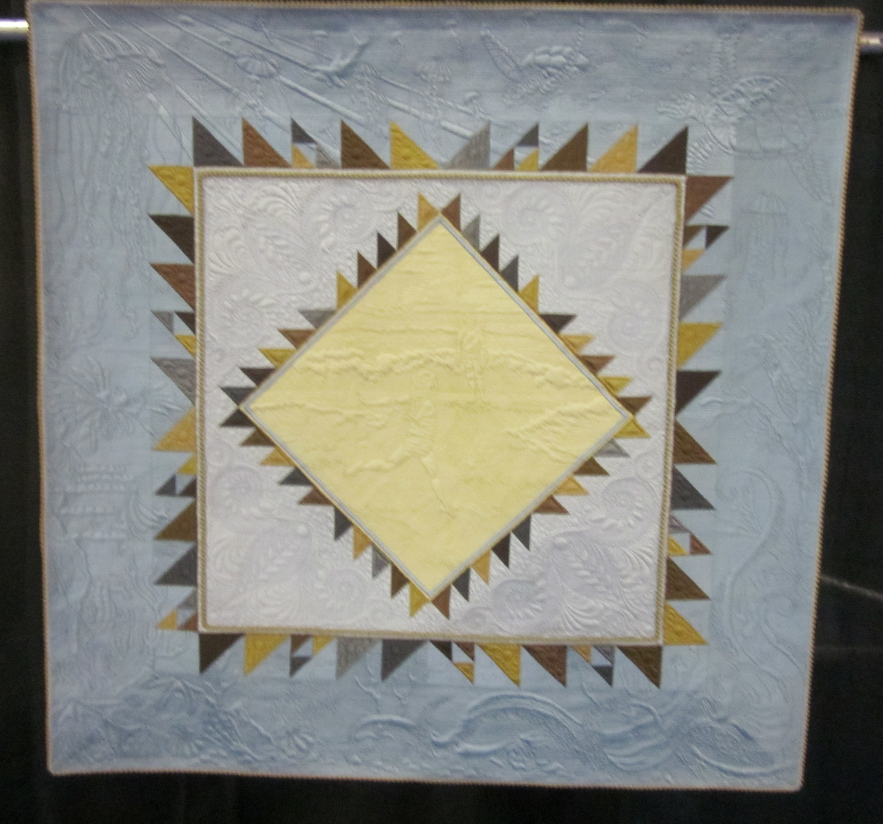 But once I got up close, my jaw dropped. The quilting was amazing! The center medallion was based on a photograph of the quilter’s children playing on the beach.