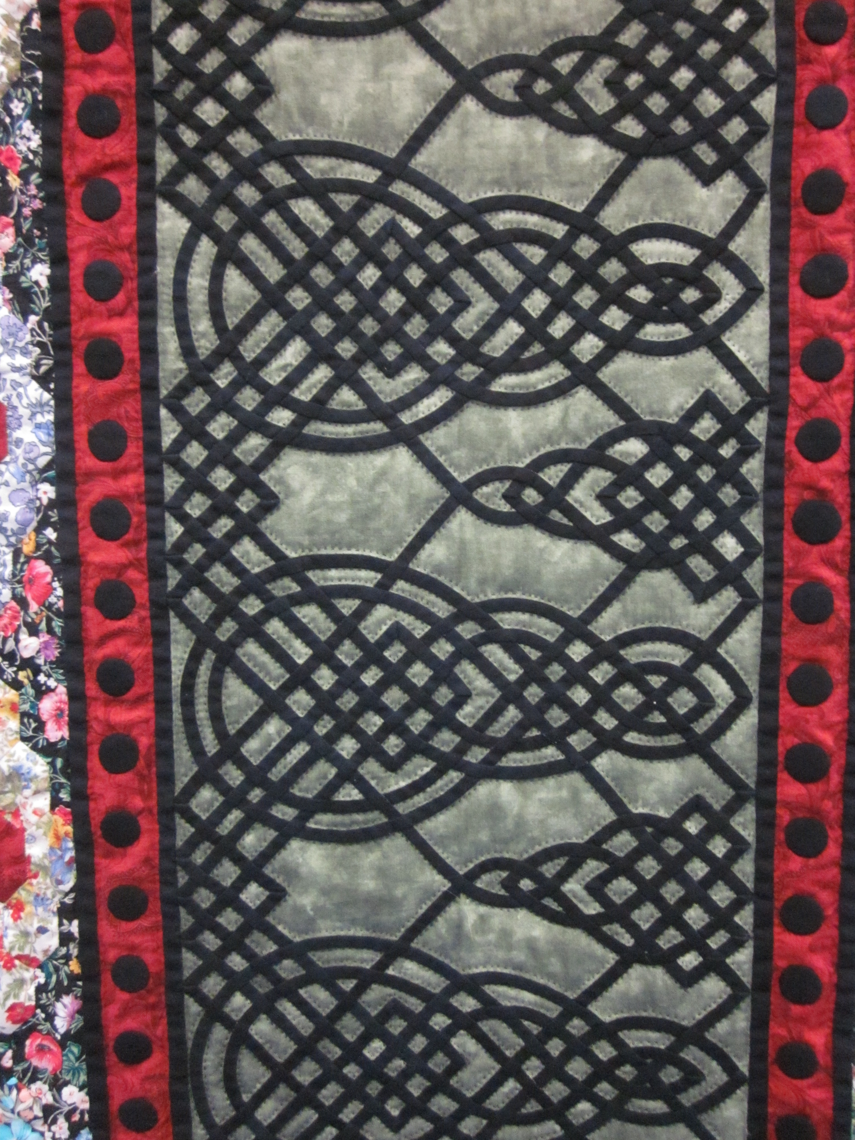 The green border with the black Celtic work was so amazing. Yards and yards of black bias so intricately and perfectly placed was phenomenal. To me, all those loops on the outside edges were the perfect finish.