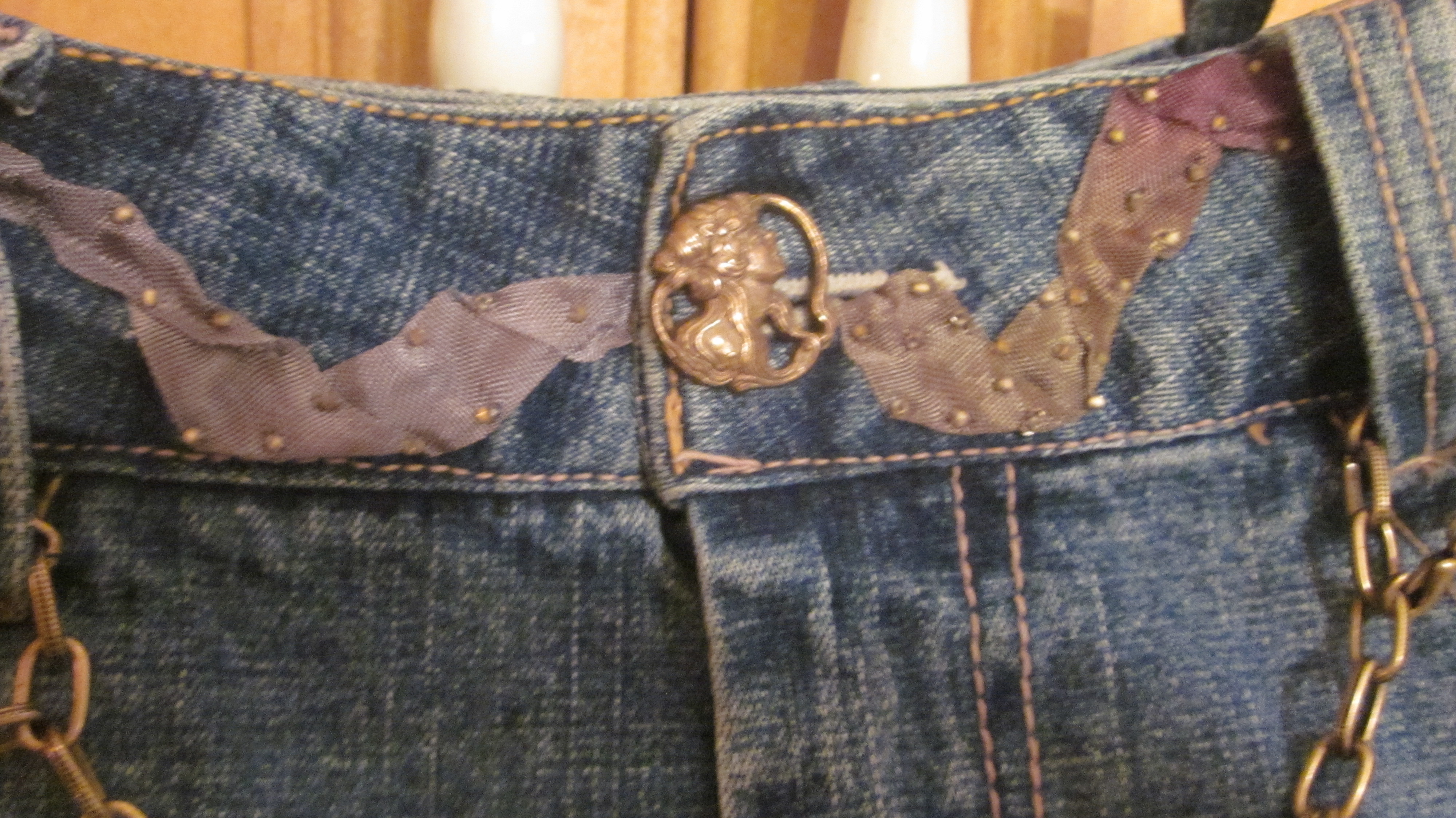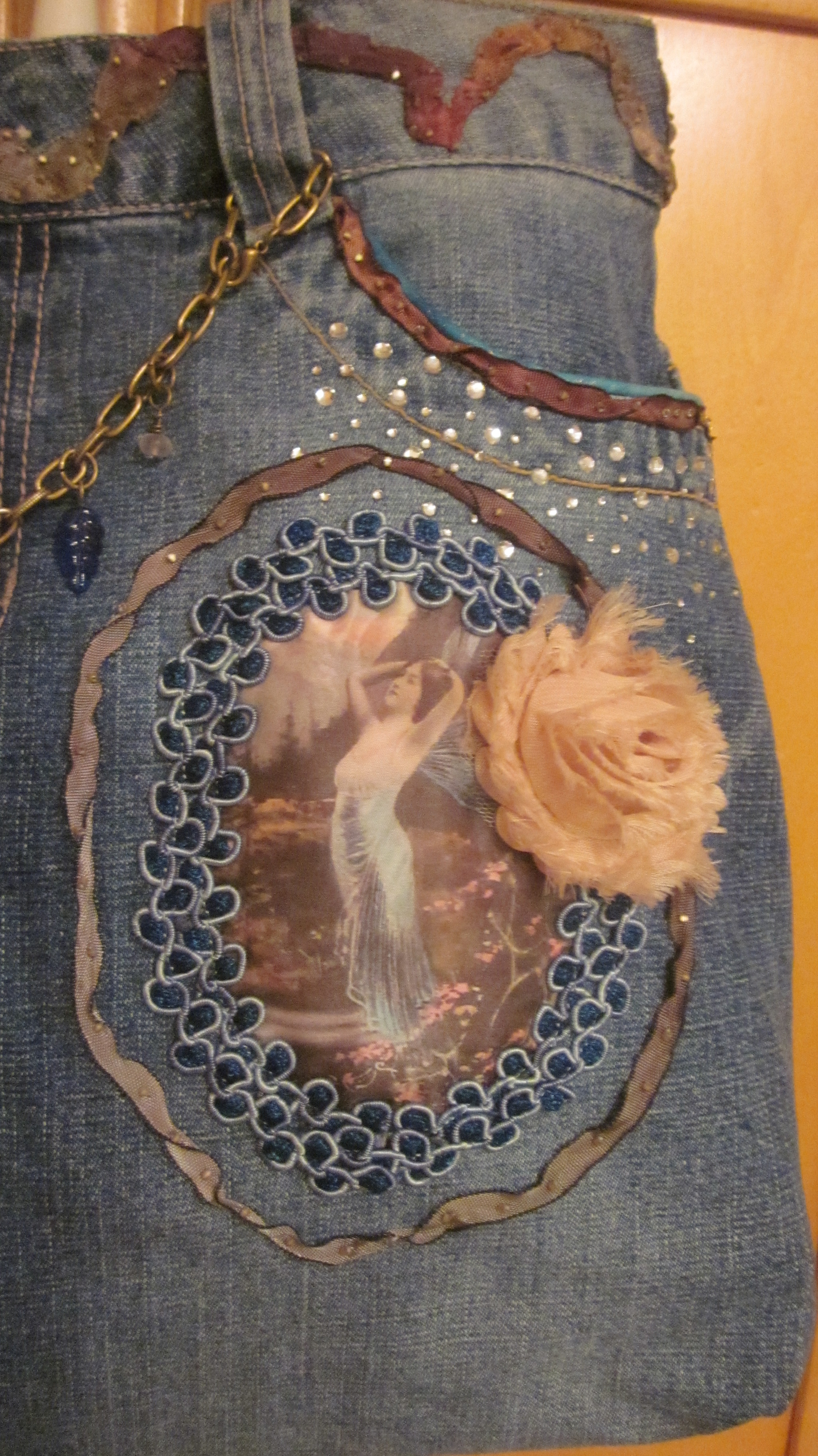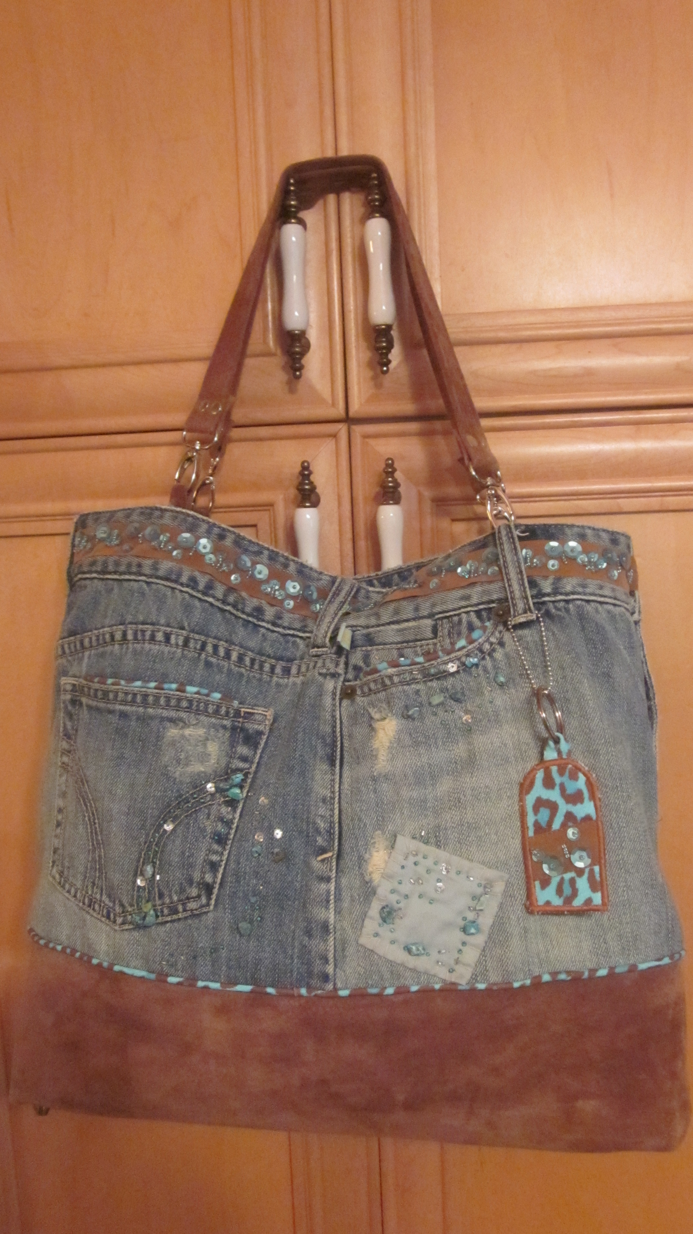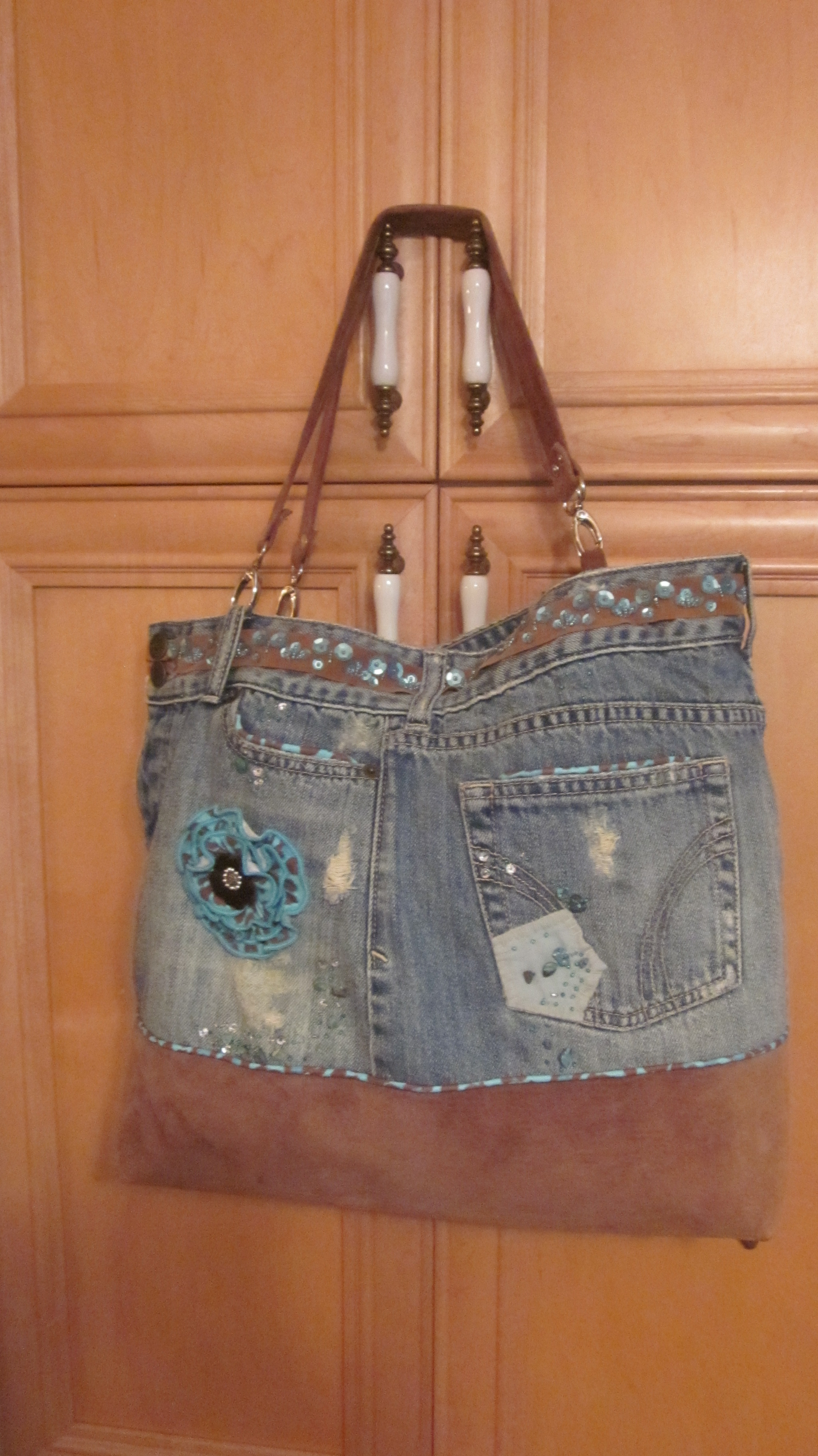 A local consignment shop, The Artistic Attic, was looking for new artists so I took my purses and other accessories in and finally had some success selling! My Etsy store never took off so this is really exciting for me. I love digging around in thrift stores for fabric treasures to recycle/upcycle into new pieces. “Pebbles” is made from a “new” denim skirt (with tags still on it), “new” suede pants (tags still on them) and a child’s two-piece leopard print outfit. It’s so much fun bringing these garments together into a cohesive piece. I was happy with the results and it’s really exciting to have a total stranger buy my work!