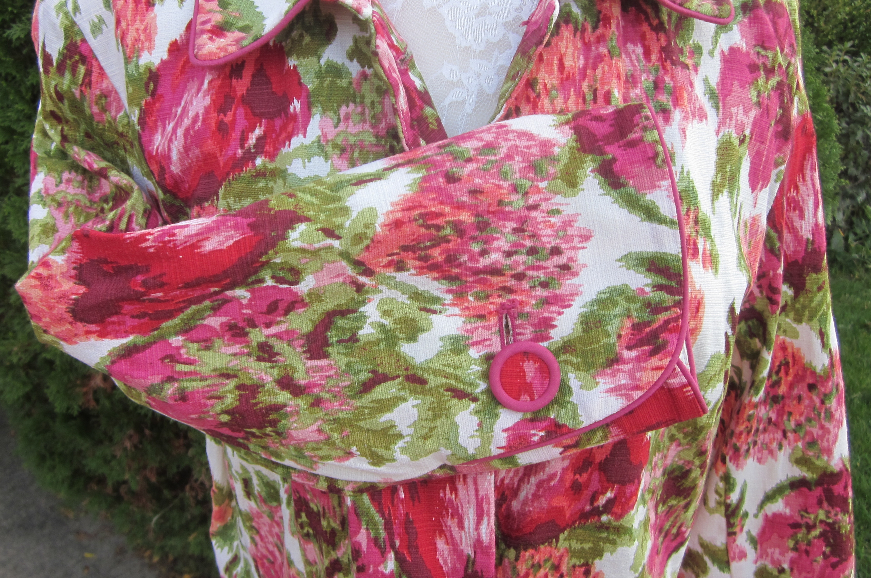 the covered buttons and all the piping outlining everything. I love this jacket and wish I could wear it! Alas, it’s two sizes too small, so how can I turn this into a fun new bag?