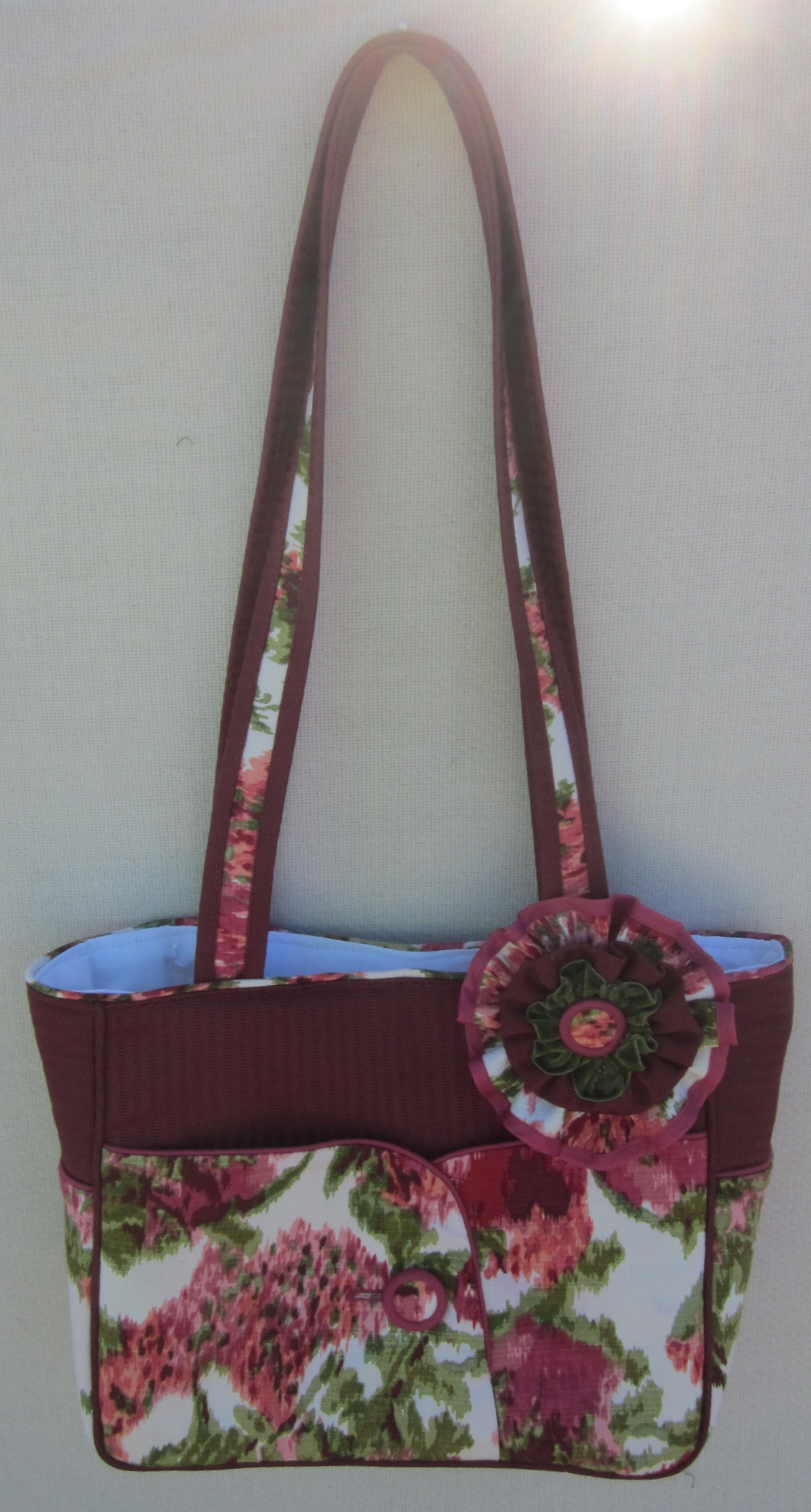 Finally, I used scraps and a left over button to create the removable flower brooch for the front of the bag: